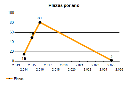En los siguientes gráficos se puede ver la evolución del número de convocatorias y plazas convocadas por el Ministerio de Industria, Energía y Turismo de los últimos años pudiéndose observar una caída del 100,00% desde el año 2014 hasta el 2026 en número de convocatorias y una caída del 100,00% en número de plazas convocadas.