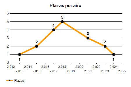 En los siguientes gráficos se puede ver la evolución del número de convocatorias y plazas convocadas por el ayuntamiento de Abegondo de los últimos años pudiéndose observar una caída del 100,00% desde el año 2013 hasta el 2025 en número de convocatorias y una caída del 100,00% en número de plazas convocadas.