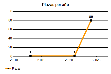 En los siguientes gráficos se puede ver la evolución del número de convocatorias y plazas convocadas por el ayuntamiento de Agaete de los últimos años pudiéndose observar una caída del 100,00% desde el año 2013 hasta el 2025 en número de convocatorias y una caída del 100,00% en número de plazas convocadas.