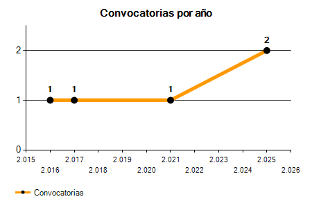 En los siguientes gráficos se puede ver la evolución del número de convocatorias y plazas convocadas por el ayuntamiento de Agullent de los últimos años pudiéndose observar un crecimiento del 100,00% desde el año 2016 hasta el 2025 en número de convocatorias y una caída del 33,33% en número de plazas convocadas.