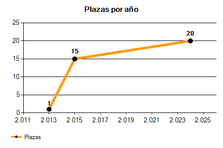 En los siguientes gráficos se puede ver la evolución del número de convocatorias y plazas convocadas por el ayuntamiento de Agulo de los últimos años pudiéndose observar una caída del 100,00% desde el año 2013 hasta el 2025 en número de convocatorias y una caída del 100,00% en número de plazas convocadas.