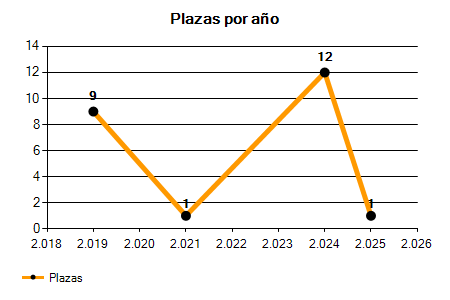 En los siguientes gráficos se puede ver la evolución del número de convocatorias y plazas convocadas por el ayuntamiento de Albatera de los últimos años pudiéndose observar una caída del 80,00% desde el año 2019 hasta el 2025 en número de convocatorias y una caída del 88,89% en número de plazas convocadas.