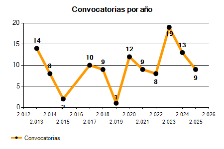 | 13 Convocatorias | 9 Convocatorias | -30,77% |