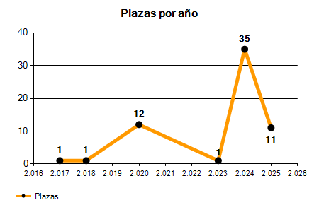 En los siguientes gráficos se puede ver la evolución del número de convocatorias y plazas convocadas por el ayuntamiento de Altea de los últimos años pudiéndose observar un crecimiento del 300,00% desde el año 2017 hasta el 2025 en número de convocatorias y un crecimiento del 1.000,00% en número de plazas convocadas.