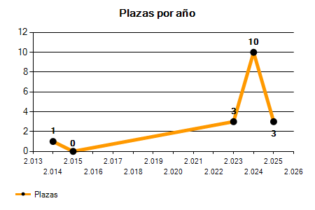 En los siguientes gráficos se puede ver la evolución del número de convocatorias y plazas convocadas por el ayuntamiento de Ampolla (L´) de los últimos años pudiéndose observar un crecimiento del 200,00% desde el año 2014 hasta el 2025 en número de convocatorias y un crecimiento del 200,00% en número de plazas convocadas.