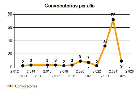 | 72 Convocatorias | 9 Convocatorias | -87,50% |