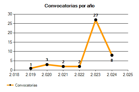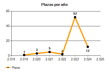 En los siguientes gráficos se puede ver la evolución del número de convocatorias y plazas convocadas por el ayuntamiento de Arenas de San Pedro de los últimos años pudiéndose observar una caída del 100,00% desde el año 2019 hasta el 2025 en número de convocatorias y una caída del 100,00% en número de plazas convocadas.