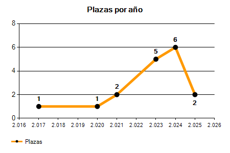 En los siguientes gráficos se puede ver la evolución del número de convocatorias y plazas convocadas por el ayuntamiento de Arjona de los últimos años pudiéndose observar un crecimiento del 100,00% desde el año 2017 hasta el 2025 en número de convocatorias y un crecimiento del 100,00% en número de plazas convocadas.
