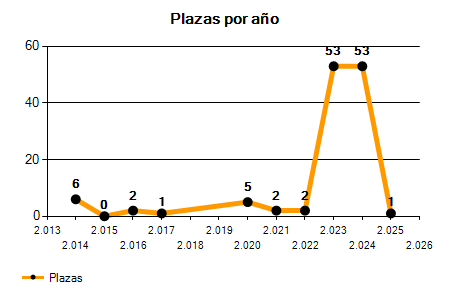 En los siguientes gráficos se puede ver la evolución del número de convocatorias y plazas convocadas por el ayuntamiento de Barco de Valdeorras (O) de los últimos años pudiéndose observar una caída del 66,67% desde el año 2014 hasta el 2025 en número de convocatorias y una caída del 83,33% en número de plazas convocadas.