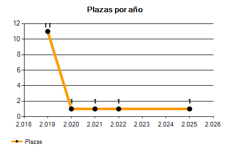 En los siguientes gráficos se puede ver la evolución del número de convocatorias y plazas convocadas por el ayuntamiento de Bedmar y Garcíez de los últimos años pudiéndose observar una caída del 80,00% desde el año 2019 hasta el 2025 en número de convocatorias y una caída del 90,91% en número de plazas convocadas.