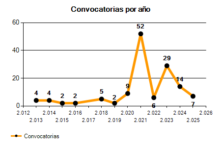 | 14 Convocatorias | 7 Convocatorias | -50,00% |