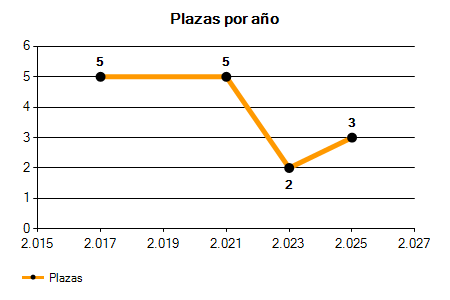 En los siguientes gráficos se puede ver la evolución del número de convocatorias y plazas convocadas por el ayuntamiento de Bormujos de los últimos años pudiéndose observar una caída del 50,00% desde el año 2017 hasta el 2025 en número de convocatorias y una caída del 40,00% en número de plazas convocadas.