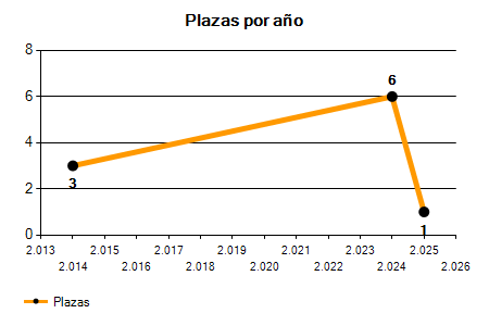 En los siguientes gráficos se puede ver la evolución del número de convocatorias y plazas convocadas por el ayuntamiento de Camarles de los últimos años pudiéndose observar una caída del 66,67% desde el año 2014 hasta el 2025 en número de convocatorias y una caída del 66,67% en número de plazas convocadas.