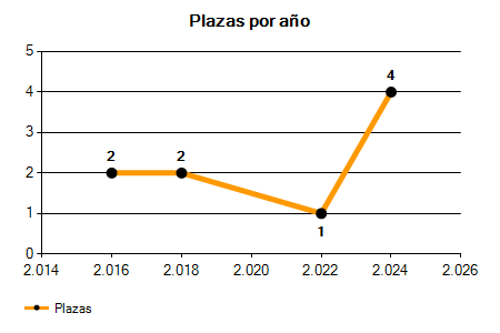 En los siguientes gráficos se puede ver la evolución del número de convocatorias y plazas convocadas por el ayuntamiento de Coirós de los últimos años pudiéndose observar una caída del 100,00% desde el año 2016 hasta el 2025 en número de convocatorias y una caída del 100,00% en número de plazas convocadas.