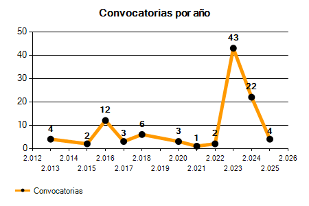 | 22 Convocatorias | 4 Convocatorias | -81,82% |