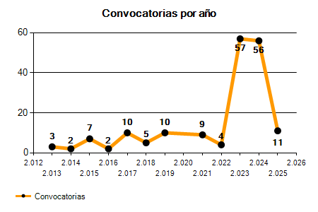 56 Convocatorias | 11 Convocatorias | -80,36% |