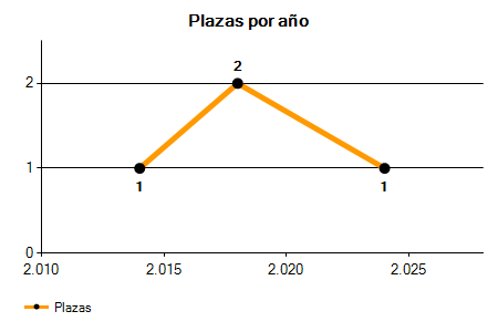 En los siguientes gráficos se puede ver la evolución del número de convocatorias y plazas convocadas por el ayuntamiento de Deyá de los últimos años pudiéndose observar una caída del 100,00% desde el año 2014 hasta el 2025 en número de convocatorias y una caída del 100,00% en número de plazas convocadas.