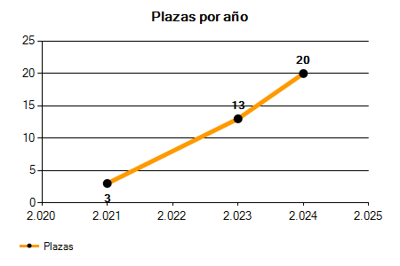 En los siguientes gráficos se puede ver la evolución del número de convocatorias y plazas convocadas por el ayuntamiento de Espluga de Francolí (L´) de los últimos años pudiéndose observar una caída del 100,00% desde el año 2021 hasta el 2025 en número de convocatorias y una caída del 100,00% en número de plazas convocadas.