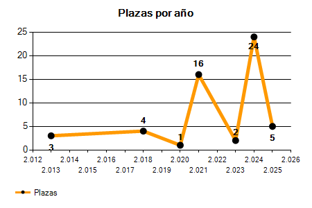 En los siguientes gráficos se puede ver la evolución del número de convocatorias y plazas convocadas por el ayuntamiento de Fene de los últimos años pudiéndose observar un crecimiento del 33,33% desde el año 2013 hasta el 2025 en número de convocatorias y un crecimiento del 66,67% en número de plazas convocadas.