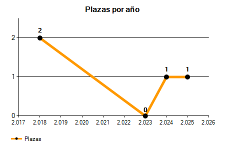 En los siguientes gráficos se puede ver la evolución del número de convocatorias y plazas convocadas por el ayuntamiento de Fornalutx de los últimos años pudiéndose observar un crecimiento y una caída del 0,00% desde el año 2018 hasta el 2025 en número de convocatorias y una caída del 50,00% en número de plazas convocadas.