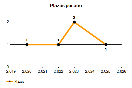 En los siguientes gráficos se puede ver la evolución del número de convocatorias y plazas convocadas por el ayuntamiento de Frailes de los últimos años pudiéndose observar un crecimiento y una caída del 0,00% desde el año 2020 hasta el 2025 en número de convocatorias y un crecimiento y una caída del 0,00% en número de plazas convocadas.