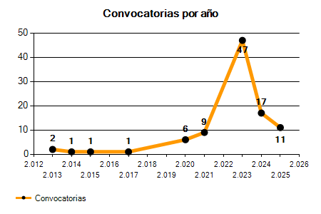 | 17 Convocatorias | 11 Convocatorias | -35,29% |
