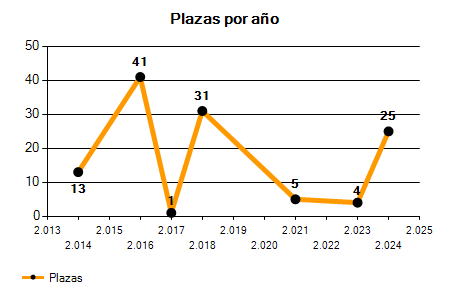 En los siguientes gráficos se puede ver la evolución del número de convocatorias y plazas convocadas por el ayuntamiento de Humanes de Madrid de los últimos años pudiéndose observar una caída del 100,00% desde el año 2014 hasta el 2025 en número de convocatorias y una caída del 100,00% en número de plazas convocadas.