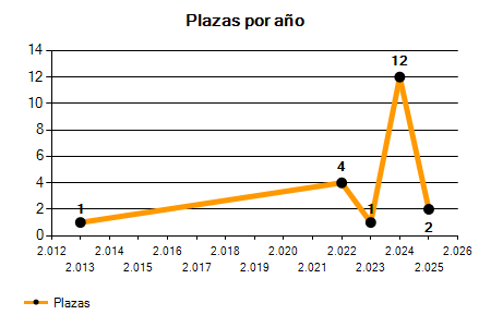En los siguientes gráficos se puede ver la evolución del número de convocatorias y plazas convocadas por el ayuntamiento de Jimena de la Frontera de los últimos años pudiéndose observar un crecimiento del 100,00% desde el año 2013 hasta el 2025 en número de convocatorias y un crecimiento del 100,00% en número de plazas convocadas.