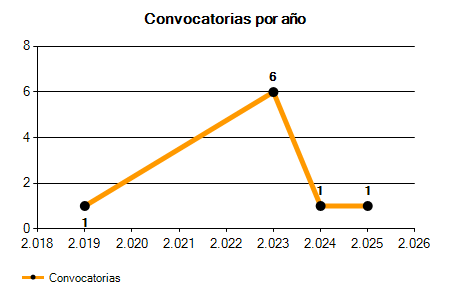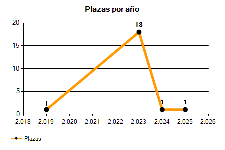En los siguientes gráficos se puede ver la evolución del número de convocatorias y plazas convocadas por el ayuntamiento de La Canonja de los últimos años pudiéndose observar un crecimiento y una caída del 0,00% desde el año 2019 hasta el 2025 en número de convocatorias y un crecimiento y una caída del 0,00% en número de plazas convocadas.
