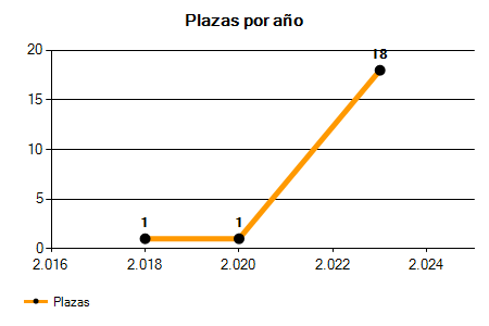 En los siguientes gráficos se puede ver la evolución del número de convocatorias y plazas convocadas por el ayuntamiento de Lahiguera de los últimos años pudiéndose observar una caída del 100,00% desde el año 2018 hasta el 2025 en número de convocatorias y una caída del 100,00% en número de plazas convocadas.
