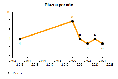En los siguientes gráficos se puede ver la evolución del número de convocatorias y plazas convocadas por el ayuntamiento de Laracha (A) de los últimos años pudiéndose observar una caída del 100,00% desde el año 2013 hasta el 2025 en número de convocatorias y una caída del 100,00% en número de plazas convocadas.
