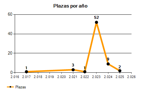 En los siguientes gráficos se puede ver la evolución del número de convocatorias y plazas convocadas por el ayuntamiento de Lasarte-Oria de los últimos años pudiéndose observar un crecimiento y una caída del 0,00% desde el año 2017 hasta el 2025 en número de convocatorias y un crecimiento del 100,00% en número de plazas convocadas.