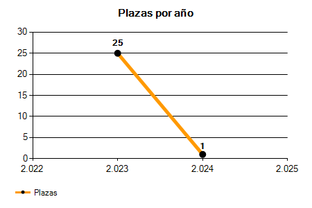 En los siguientes gráficos se puede ver la evolución del número de convocatorias y plazas convocadas por el ayuntamiento de Laxe de los últimos años pudiéndose observar una caída del 100,00% desde el año 2023 hasta el 2025 en número de convocatorias y una caída del 100,00% en número de plazas convocadas.