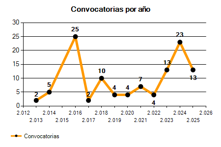23 Convocatorias | 13 Convocatorias | -43,48% |