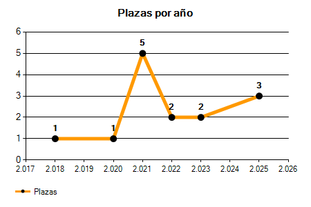 En los siguientes gráficos se puede ver la evolución del número de convocatorias y plazas convocadas por el ayuntamiento de Mengíbar de los últimos años pudiéndose observar un crecimiento del 200,00% desde el año 2018 hasta el 2025 en número de convocatorias y un crecimiento del 200,00% en número de plazas convocadas.