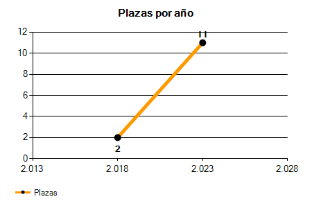 En los siguientes gráficos se puede ver la evolución del número de convocatorias y plazas convocadas por el ayuntamiento de Montanejos de los últimos años pudiéndose observar una caída del 100,00% desde el año 2018 hasta el 2025 en número de convocatorias y una caída del 100,00% en número de plazas convocadas.