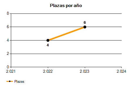 En los siguientes gráficos se puede ver la evolución del número de convocatorias y plazas convocadas por el ayuntamiento de Móra d´Ebre de los últimos años pudiéndose observar una caída del 100,00% desde el año 2022 hasta el 2025 en número de convocatorias y una caída del 100,00% en número de plazas convocadas.