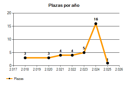 En los siguientes gráficos se puede ver la evolución del número de convocatorias y plazas convocadas por el ayuntamiento de Noia de los últimos años pudiéndose observar un crecimiento y una caída del 0,00% desde el año 2018 hasta el 2025 en número de convocatorias y una caída del 66,67% en número de plazas convocadas.