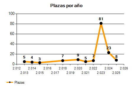En los siguientes gráficos se puede ver la evolución del número de convocatorias y plazas convocadas por el ayuntamiento de Oleiros de los últimos años pudiéndose observar un crecimiento y una caída del 0,00% desde el año 2013 hasta el 2025 en número de convocatorias y un crecimiento del 60,00% en número de plazas convocadas.