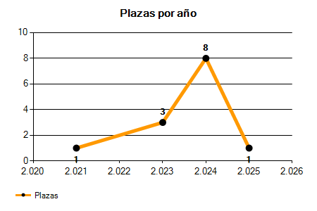 En los siguientes gráficos se puede ver la evolución del número de convocatorias y plazas convocadas por el ayuntamiento de Orcera de los últimos años pudiéndose observar un crecimiento y una caída del 0,00% desde el año 2021 hasta el 2025 en número de convocatorias y un crecimiento y una caída del 0,00% en número de plazas convocadas.