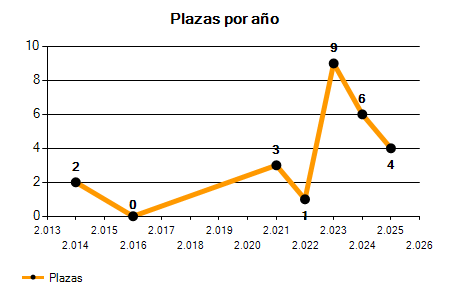 En los siguientes gráficos se puede ver la evolución del número de convocatorias y plazas convocadas por el ayuntamiento de Pallaresos (Els) de los últimos años pudiéndose observar un crecimiento del 33,33% desde el año 2014 hasta el 2025 en número de convocatorias y un crecimiento del 100,00% en número de plazas convocadas.