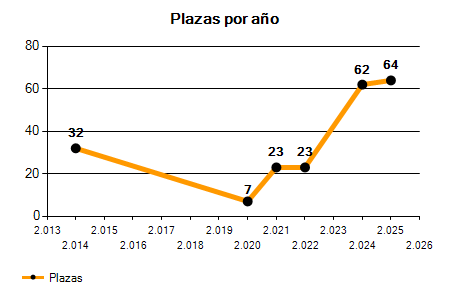 | Total | 64 plazas convocadas | 100,00% |