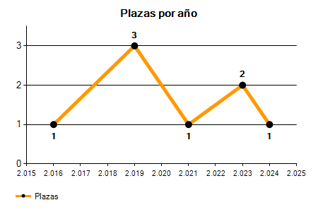 En los siguientes gráficos se puede ver la evolución del número de convocatorias y plazas convocadas por el ayuntamiento de Pedrajas de San Esteban de los últimos años pudiéndose observar una caída del 100,00% desde el año 2016 hasta el 2025 en número de convocatorias y una caída del 100,00% en número de plazas convocadas.