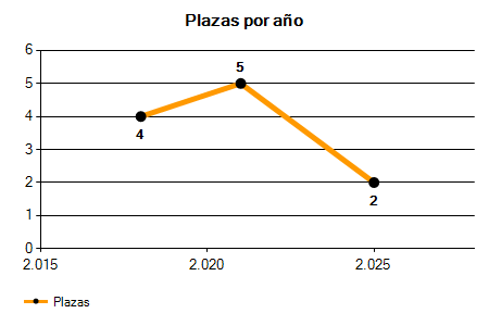 En los siguientes gráficos se puede ver la evolución del número de convocatorias y plazas convocadas por el ayuntamiento de Peñafiel de los últimos años pudiéndose observar un crecimiento del 100,00% desde el año 2018 hasta el 2025 en número de convocatorias y una caída del 50,00% en número de plazas convocadas.