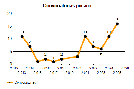 | 11 Convocatorias | 16 Convocatorias | +45,45% |