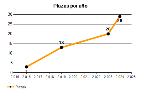 En los siguientes gráficos se puede ver la evolución del número de convocatorias y plazas convocadas por el ayuntamiento de Puerto Real de los últimos años pudiéndose observar una caída del 100,00% desde el año 2016 hasta el 2025 en número de convocatorias y una caída del 100,00% en número de plazas convocadas.