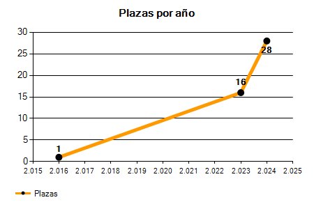 En los siguientes gráficos se puede ver la evolución del número de convocatorias y plazas convocadas por el ayuntamiento de Roda de Barà de los últimos años pudiéndose observar una caída del 100,00% desde el año 2016 hasta el 2025 en número de convocatorias y una caída del 100,00% en número de plazas convocadas.