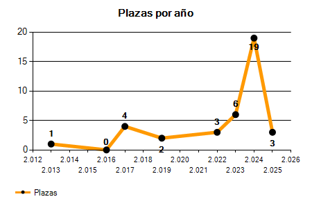 En los siguientes gráficos se puede ver la evolución del número de convocatorias y plazas convocadas por el ayuntamiento de Sada de los últimos años pudiéndose observar un crecimiento del 200,00% desde el año 2013 hasta el 2025 en número de convocatorias y un crecimiento del 200,00% en número de plazas convocadas.