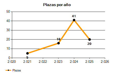 En los siguientes gráficos se puede ver la evolución del número de convocatorias y plazas convocadas por el ayuntamiento de San Agustín del Guadalix de los últimos años pudiéndose observar un crecimiento del 400,00% desde el año 2021 hasta el 2025 en número de convocatorias y un crecimiento del 300,00% en número de plazas convocadas.