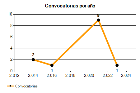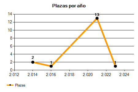 En los siguientes gráficos se puede ver la evolución del número de convocatorias y plazas convocadas por el ayuntamiento de Sant Carles de la Ràpita de los últimos años pudiéndose observar una caída del 100,00% desde el año 2014 hasta el 2025 en número de convocatorias y una caída del 100,00% en número de plazas convocadas.